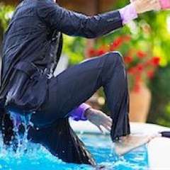 Steph_nageur got pulled into the shower by PreppyGuy with his clothes on