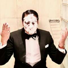 BrianaCD22 was surprised by The Great Reinholdo with a big sloppy cream pie to the face